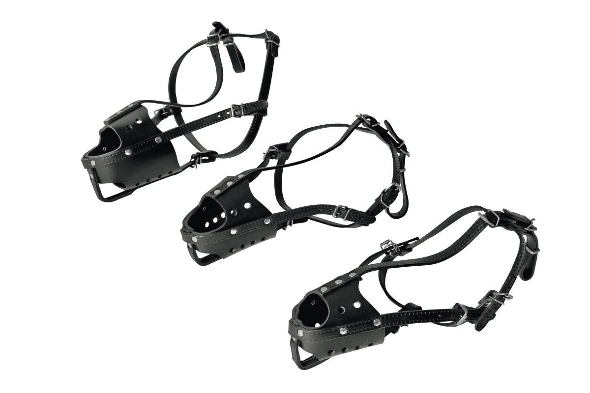 Muselière avec renfort métal. La taille en centimètre correspond au tour de cou du chien.