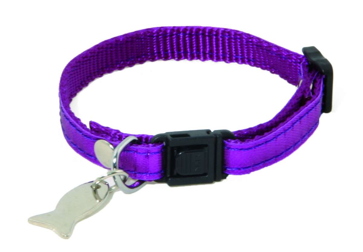 Largeur 100mm. Longueur 17 à 27cm. Galon motif Disco cousu sur sangle nylon. Rivets double tête. Bouclerie en métal et plastique. Boucle sécurité anti-étranglement. Pendentif Poisson. Fabriqué en France.