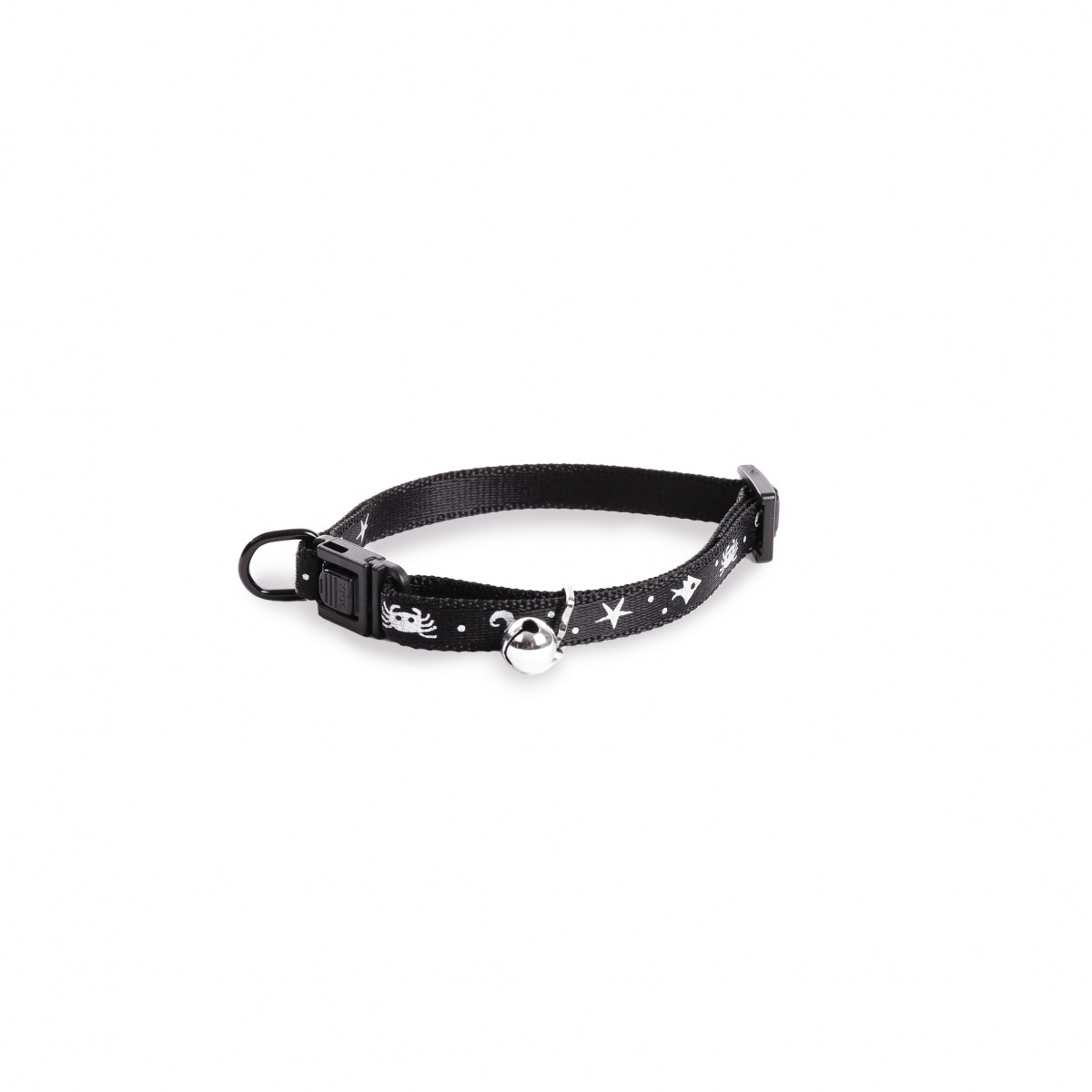 Largeur 10mm. Longueur 20 à 30cm. Boucle de sécurité anti-étranglement. 1 grelot.