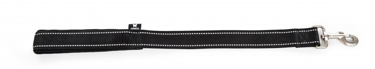 Longueur 60cm - largeur 40cm. Laisse courte nylon Neo+ avec poignée confort doublée de néoprène, couture réfléchissantes, mousqueton carabine