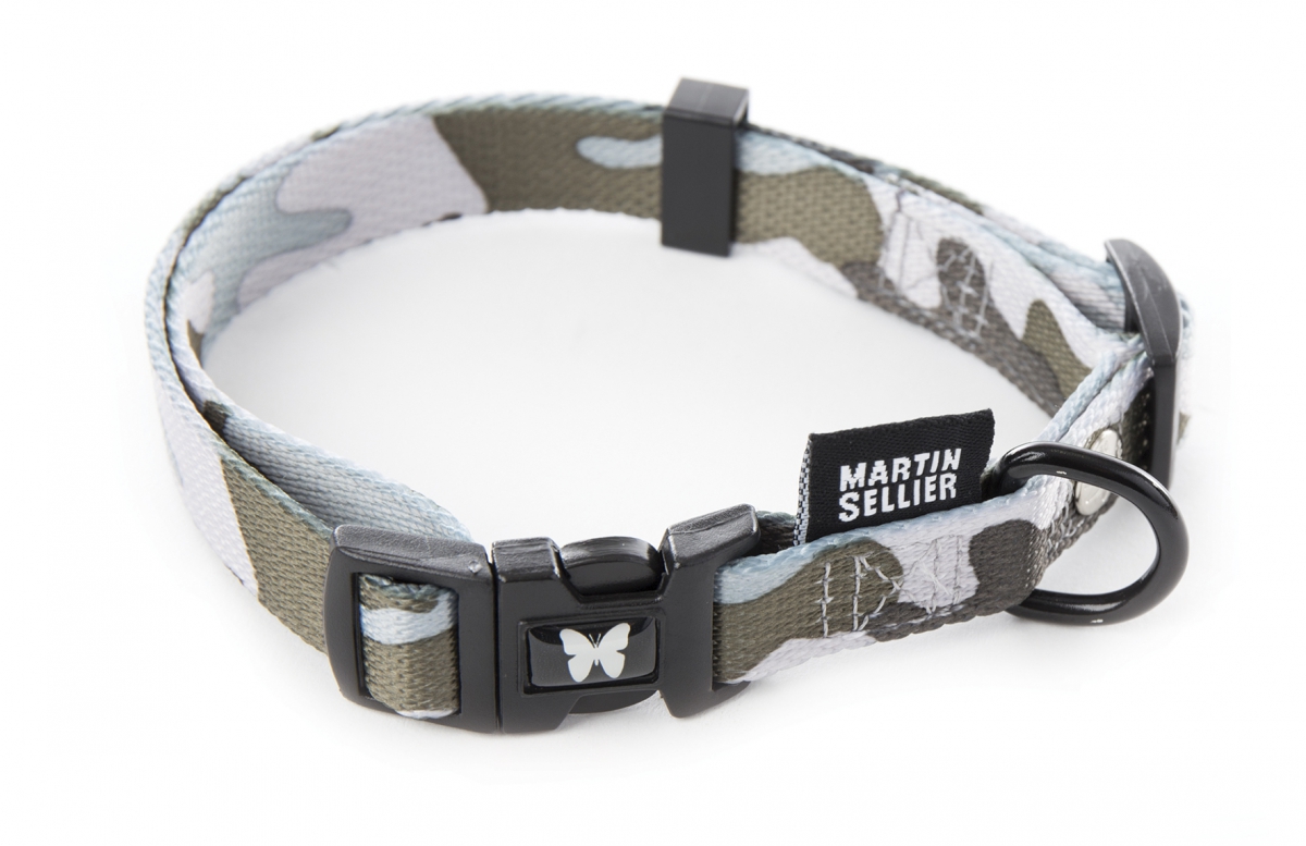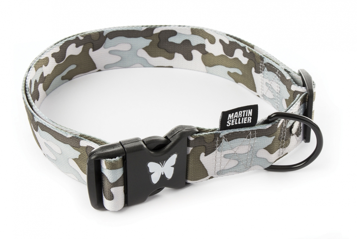 Collier réglable en nylon "Camouflage" Gris pour chien.