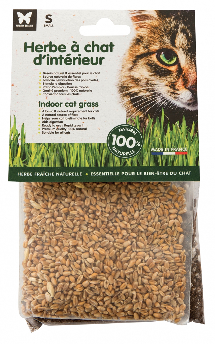 Source naturelle de fibres. Favorise l’évacuation des poils avalés. Stimule la digestion. Prêt à l’emploi, pousse rapide. Convient à tous les chats