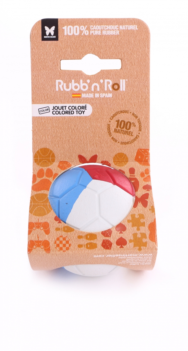 Balle pour chien, aux couleurs de la France ou de la Belgique, en caoutchouc 100% naturel provenant de l'Hévéa. Evite les risques d'occlusion intestinale. Biodégradable et écologique.