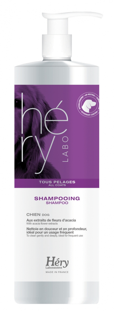 Le shampooing pour chien tous pelages Héry nettoie en douceur et en profondeur tous les types de pelage, idéal usage fréquent.