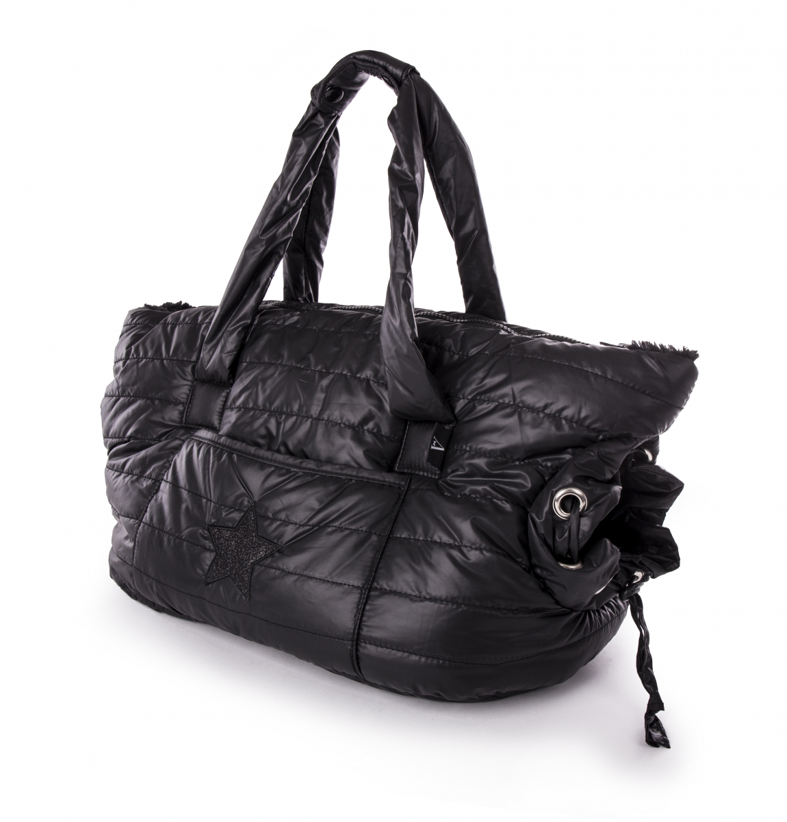 Il se ferme entièrement par une fermeture éclair sur le dessus et un lien permet de régler l’ouverture centrale. L’intérieur est en fourrure. 1 poche sur le côté. 1 fond rigide amovible.