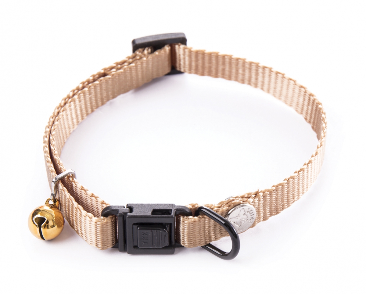Collier réglable nylon uni pour chat - Martin Sellier - Beige