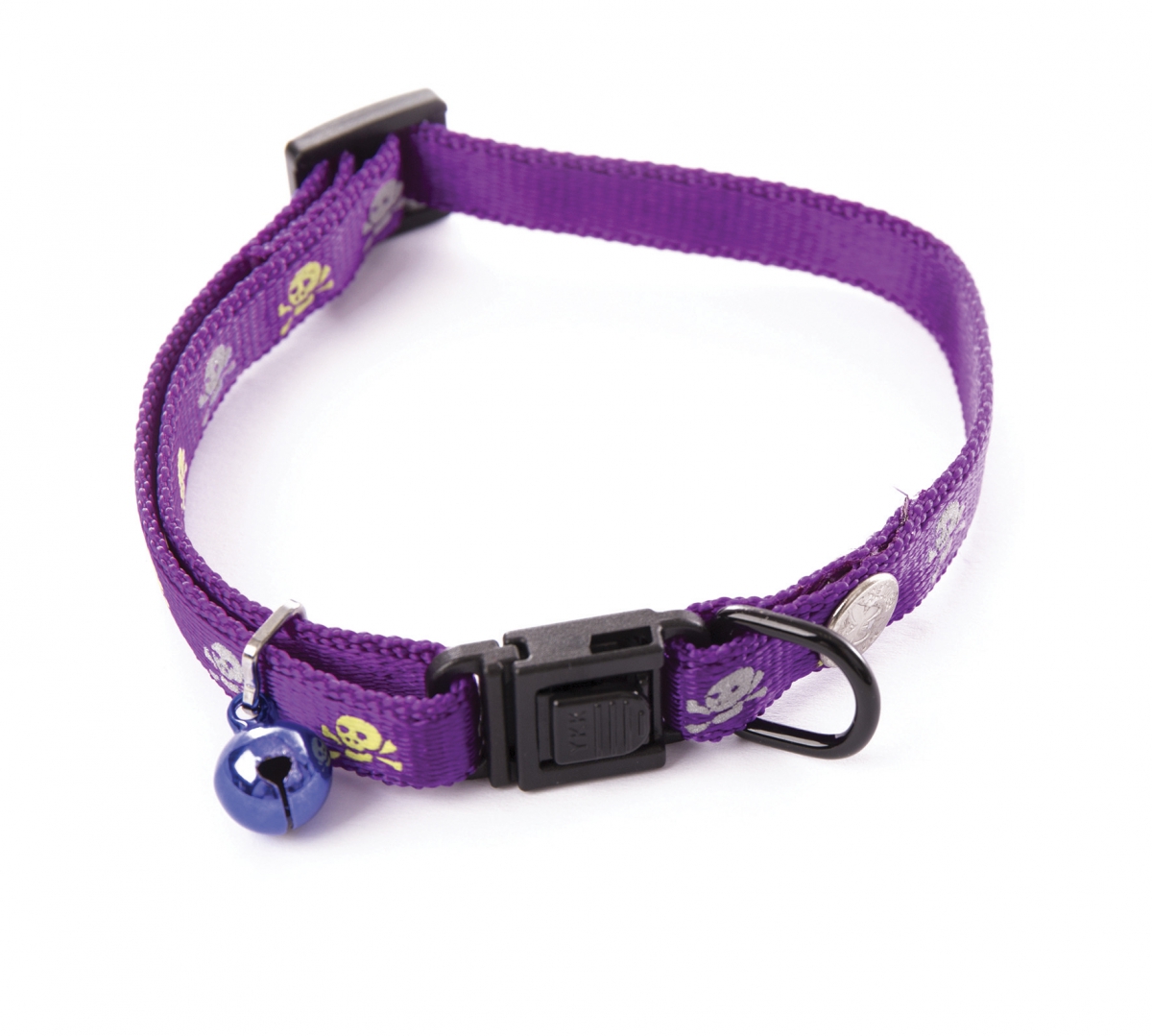 Collier pour chat réglable en nylon mauve "Tête de mort" Martin