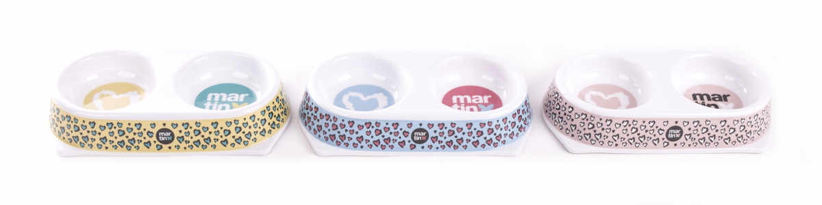 Gamelle double pour chat en mélamine "cœur léopard" - Présentoir 6 pièces