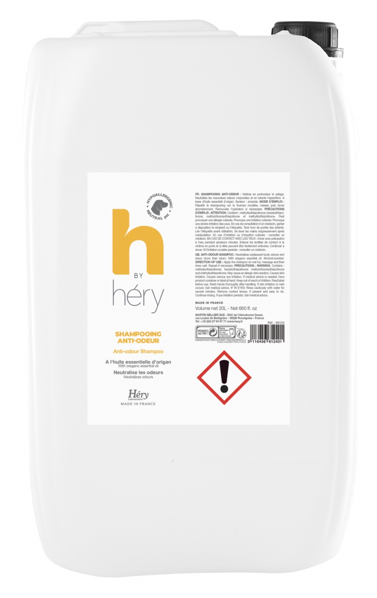 Shampooing Anti-odeurs à l’huile essentiel d’origan, parfum amande : Nettoie en profondeur le pelage. Neutralise les mauvaises odeurs corporelles et en retarde l’apparition.