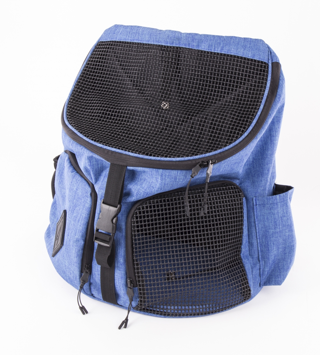 Pour la sécurité : un filet solide, des fermetures éclairs dont une double sur le dessus et maintenue par une boucle de sécurité, une sangle avec un mousquton à l’intérieur pour attacher au collier de l’animal.