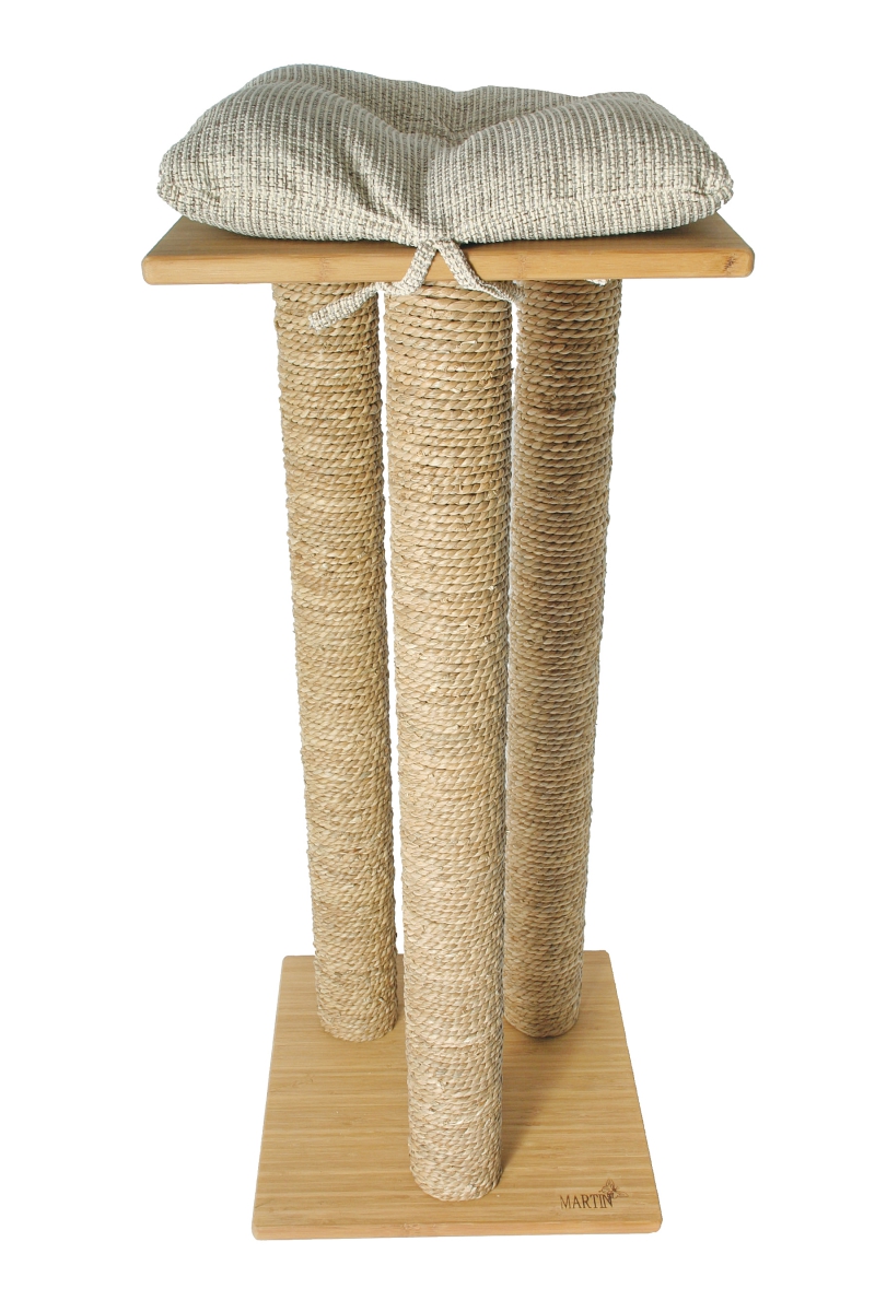 Arbre à Chat Martin Sellier en bambou massif et poteaux en sisal. Station de repos avec coussin amovible en toile naturelle.