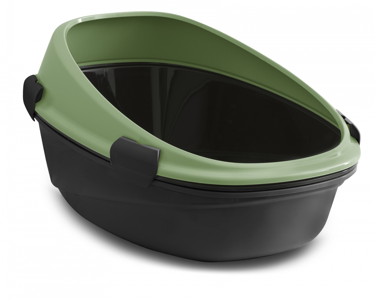 En plastique 100% recyclé, le bac à litière est de grande taille, avec rebord très haut à l’arrière pour une propreté optimale quelque soit la position du chat dans le bac.