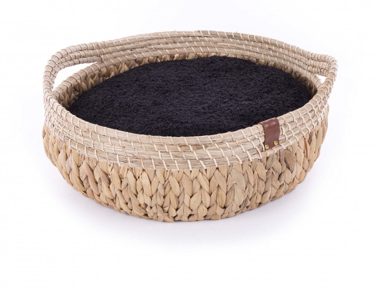 Une jolie corbeille qui acceuillera votre chat ou votre chien pour des siestes de rêve. Sa forme ronde en fait un parfait nid douillet. Le coussin est amovible et bien moelleux. Une face est en imitation fourrure très douce et l’autre en tissu uni. Ce design élégant apporte une touche de nature et de design dans votre déco. Chaque pièce est unique et fabriquée entièrement à la main et avec des matières vivantes et naturelles comme le bois, le bambou ou la jacynthe d’eau.