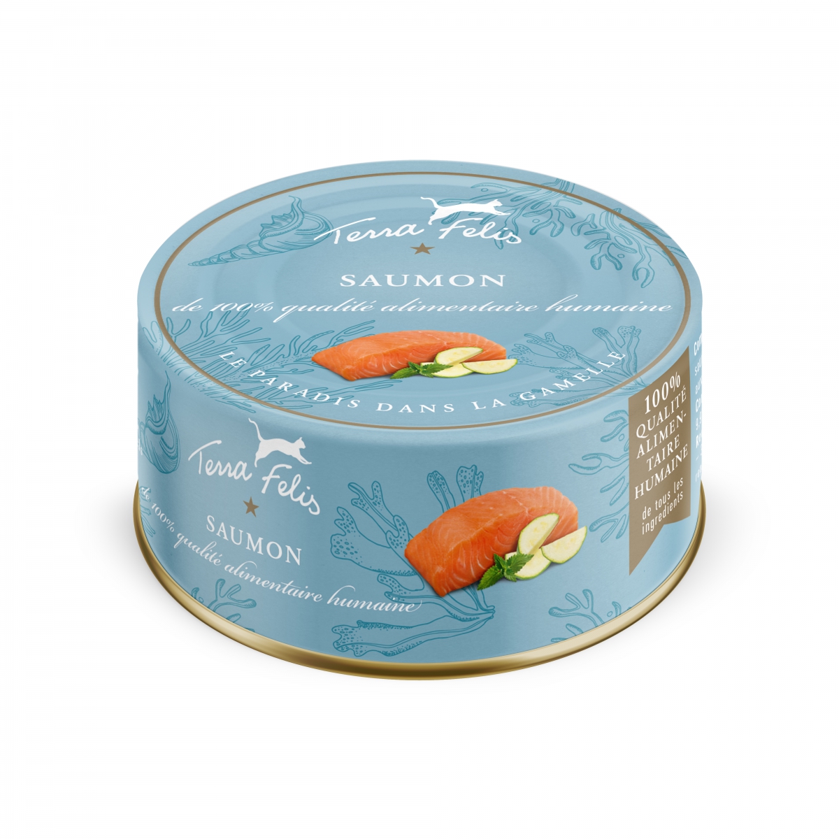 Voir le descriptifSAVEUR SAUMON: Filet de saumon (90%), courgette (4%), tomate en poudre, algue marine, herbeaux- chats, minéraux.