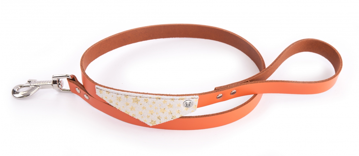 Laisse en coupé franc et bandana Collection MIAMI Doré Orange