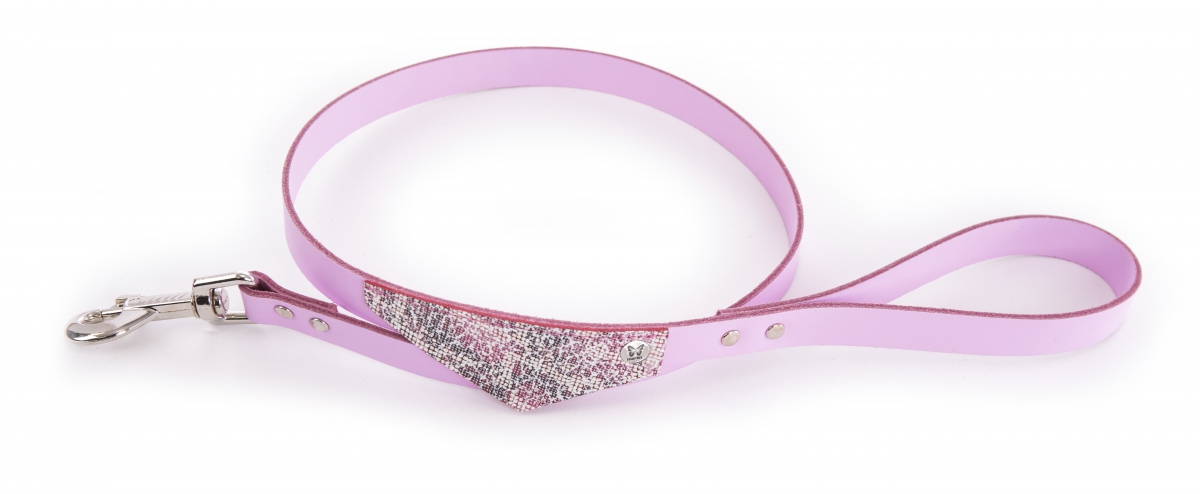 Laisse cuir MALIBU coupé franc et bandana cuir fantaisie - Rose