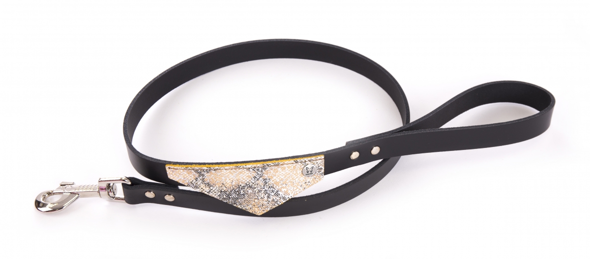 Laisse cuir MALIBU coupé franc et bandana cuir fantaisie - Noir