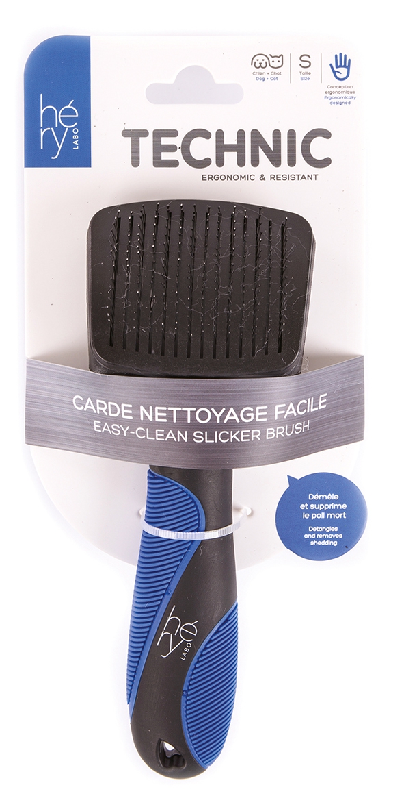 Démêle et supprime les poils morts. La carde nettoyage facile est spécialement étudiée pour le brossage des sous-poils du pelage. Grâce à ses picots souples et recourbés, vous pourrez brosser en profondeur et démêler les nœuds en douceur. Son système de bouton poussoir est idéal pour récupérer facilement les poils de la brosse