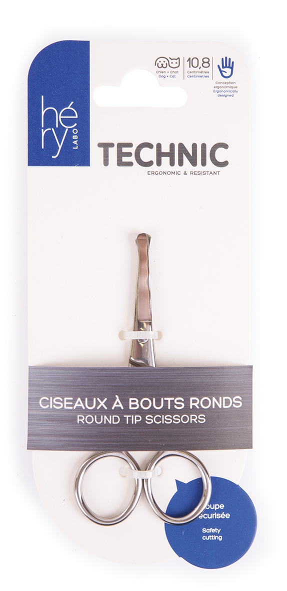 Les ciseaux à bouts ronds permettent un toilettage des oreilles, museau, pattes et zones de finitions sans risques pour l’animal.
