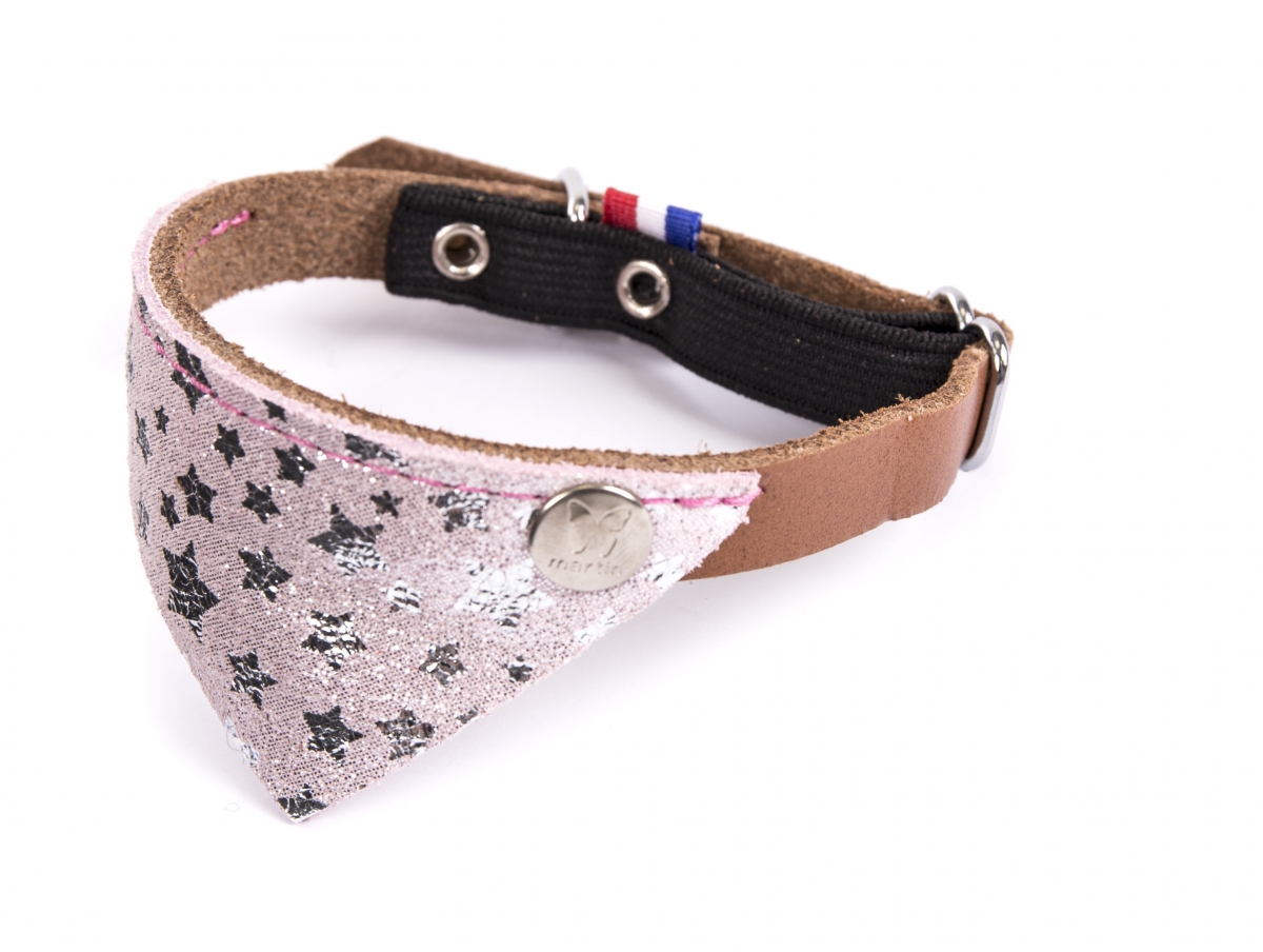 Collier en cuir rose cognac pour Chat - Collection Malibu Chat