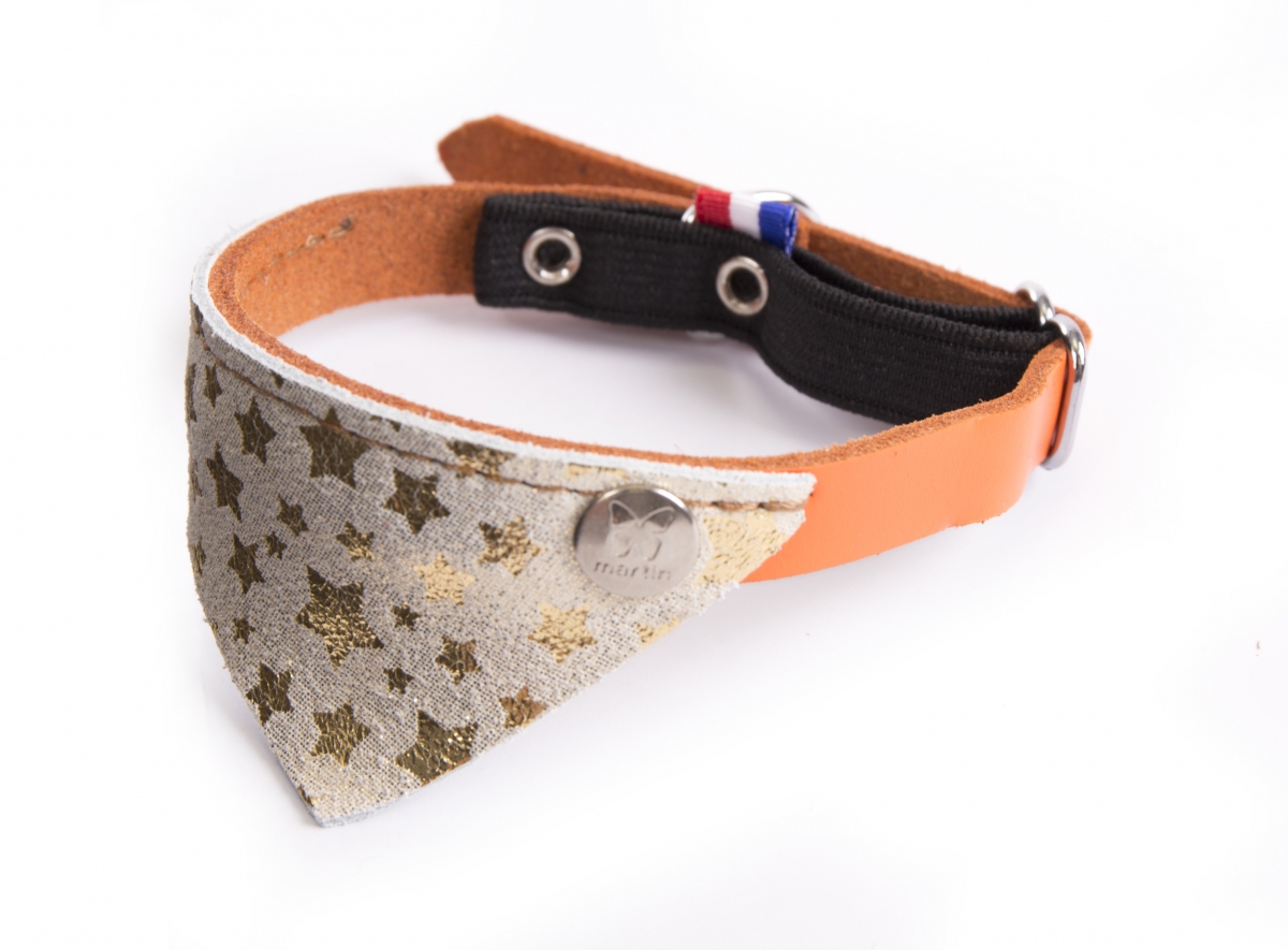 Collier en cuir doré orange pour Chat - Collection Malibu Chat