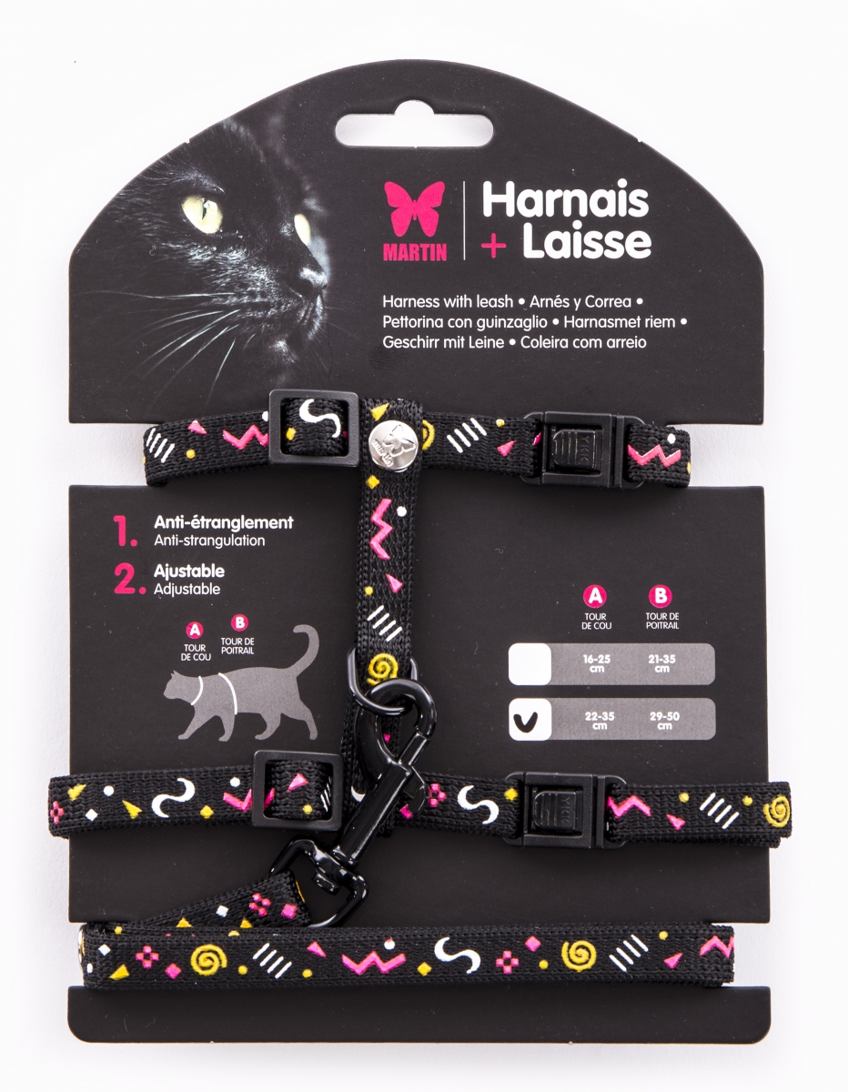 Set de Harnais et Laisse CHAT Carnaval - Noir