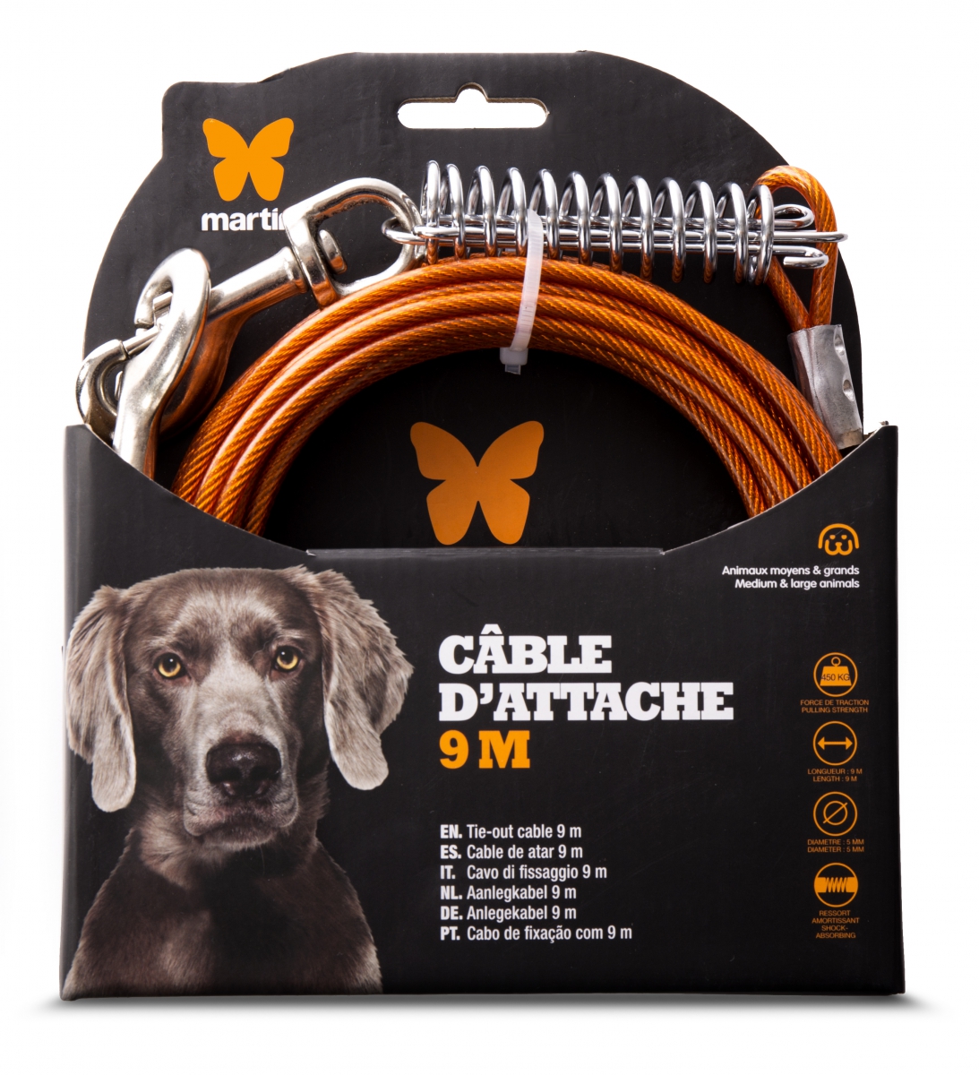 Câble d'attache destiné aux animaux de taille moyenne et grande. Plus de légèreté et autant de sécurité.