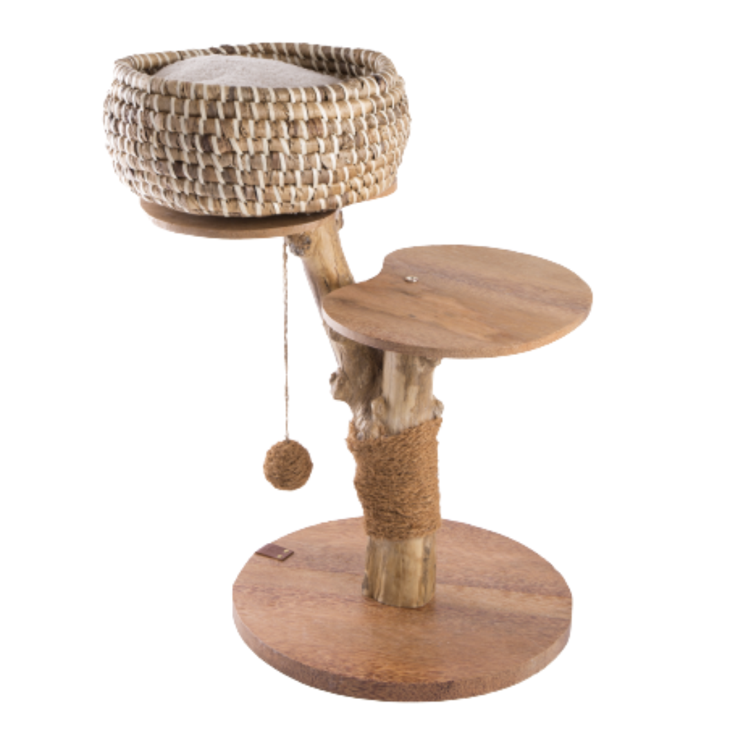 Construite avec le bois de caféier de qualité, la gamme Café offre des arbres à chat uniques et incomparables pour votre chat. Les fibres de coco enroulées satisferont ses besoins de griffade et son aspect brut et primitif donnera une touche esthétique incontestable à votre intérieur.