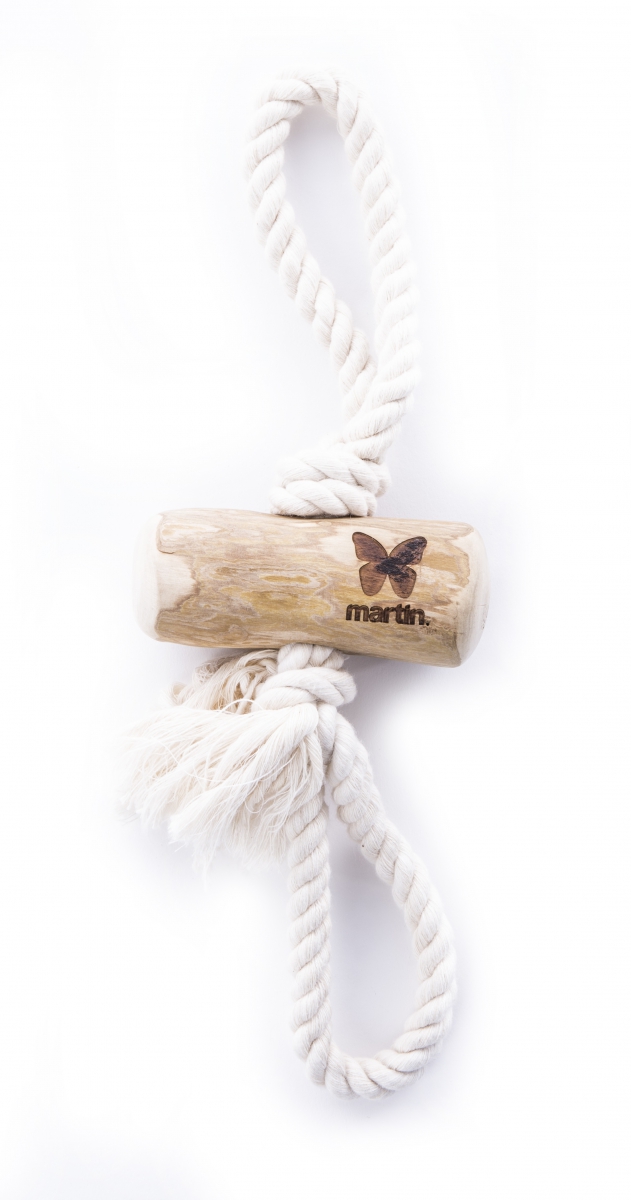 Bois de caféier à mâcher avec une corde 100% coton pour chiens. Produit issu de la terre.