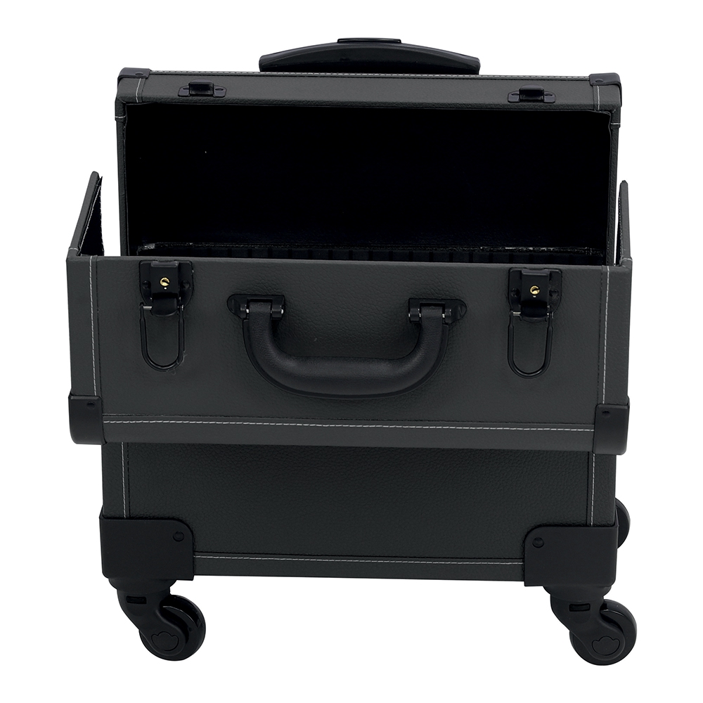 Valise de rangement. Nombreux compartiment de rangement et équipée d'une poignée téléscopique et de roulettes. Couleur noir.