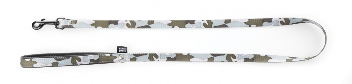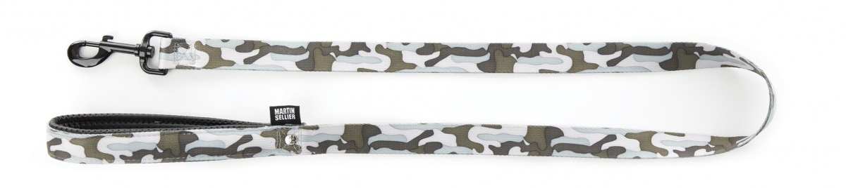 Laisse 1,2 m en nylon pour chien avec poignée confort et mousqueton carabine. Collection camouflage. Coloris Gris.