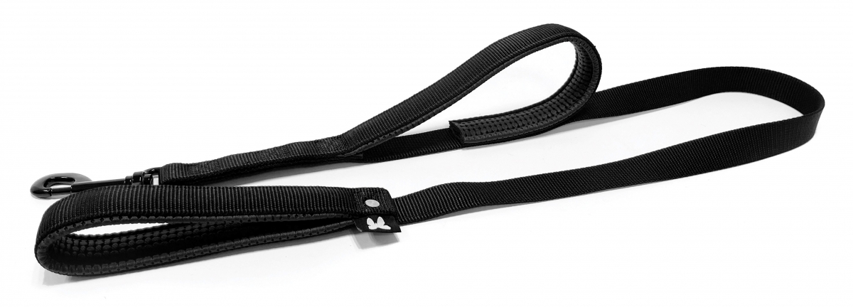 Cette laisse est doté de 2 poignées doublés de mousse confort, sa seconde poignée située en bas vers le mousqueton permettra au maître de tenir le chien près de lui en cas de besoin. Mousqueton en métal chromé noir.