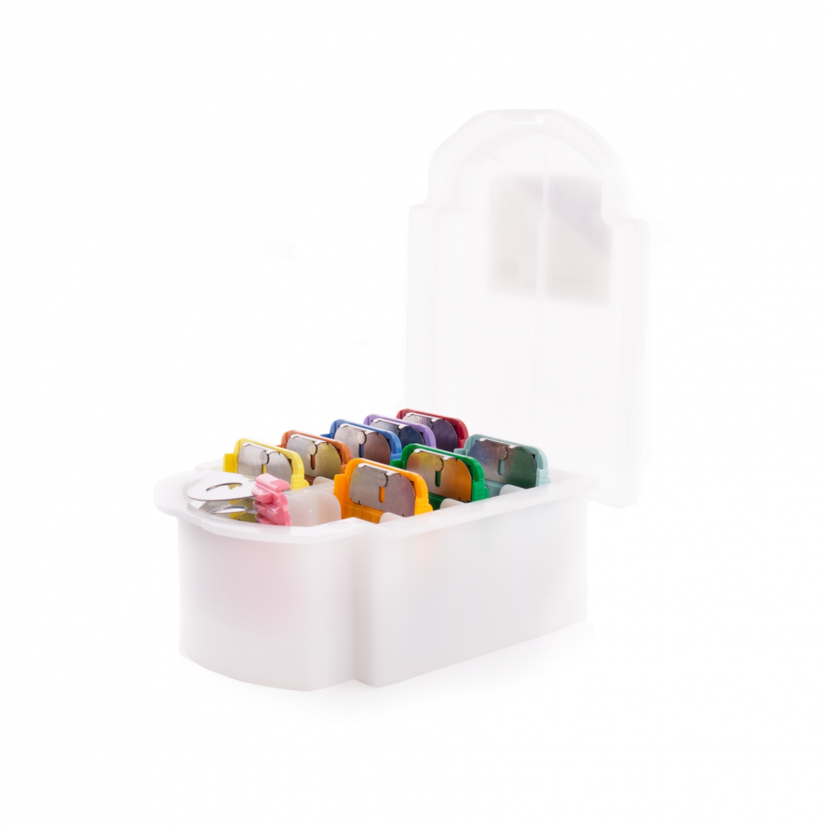 Lot de 9 surpeignes Optimum en acier adaptable sur les têtes de coupe N°10, N°15 et N°30. Les surpeignes métal Optimum sont dotées de dents en acier lisses et arrondies pour plus de sécurité. Les dents latérales sont renforcées, ce qui favorise le passage dans le poil et assure le maintien des autres lames. Ils permettent une coupe nette et précise. La fixation du peigne par ressort clip ajustable permet une utilisation sur les tondeuses utilisant les têtes de coupe clip system (Optimum, Oster, Wahl, Moser, heiniger etc...). L'organisateur fournis avec, vous permettra de stocker facilement les surpeignes. 9 possibilités de longueurs de poils sont proposées, comprises entre 3 et 32 mm. Elles disposent d'une couleur dédiée pour une reconnaissance facile.