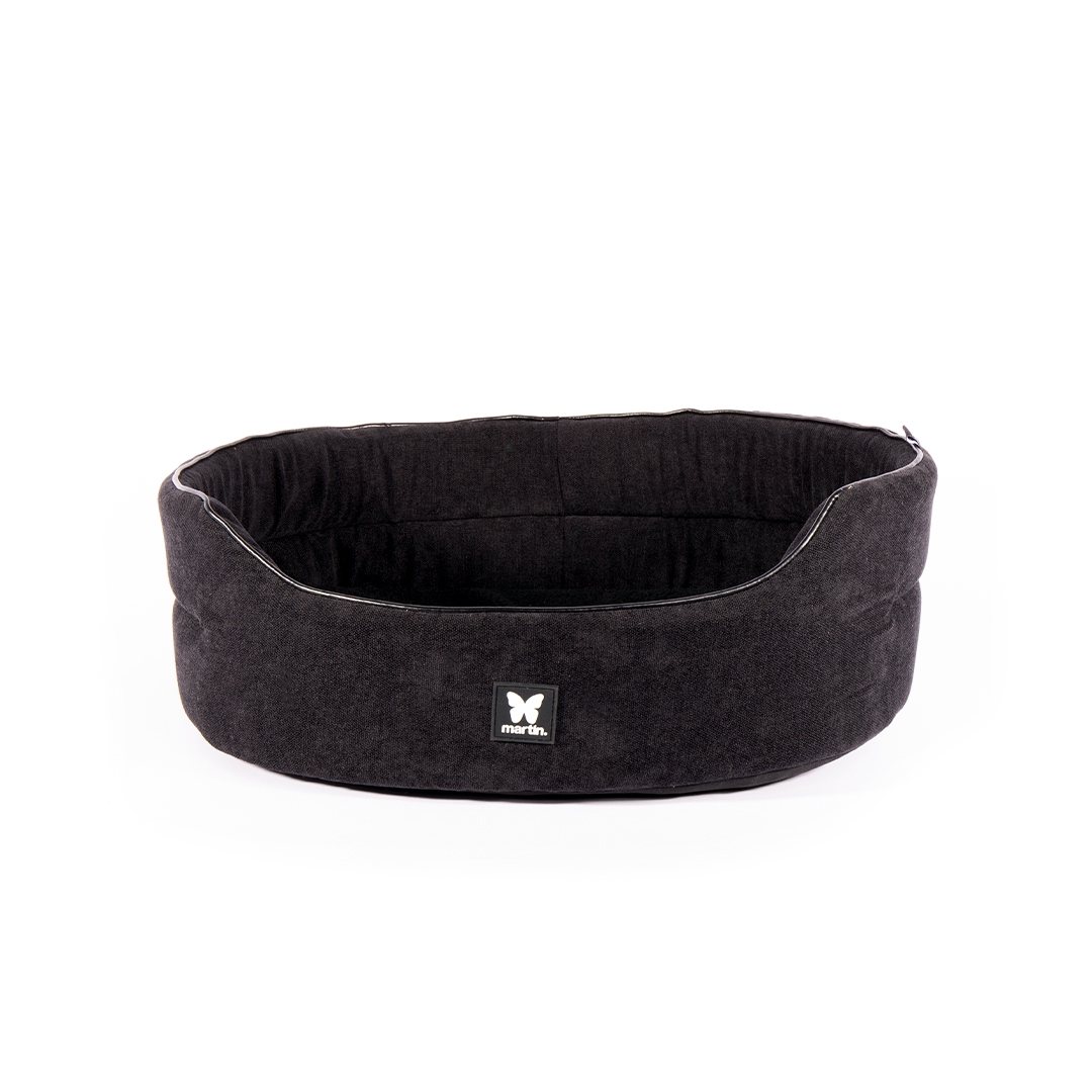 Corbeille ovale aux contours en mousse pour un bon maintien. Avec son liseré imitation cuir et son tissu bien épais apportant du relief, cette corbeille s'adaptera aux intérieurs les plus élégants. Le coussin amovible en forme de galette assure un bon confort et de la douceur et s'adapte à vos envies : une face en fourrure noire type mouton et l'autre en tissu très doux.