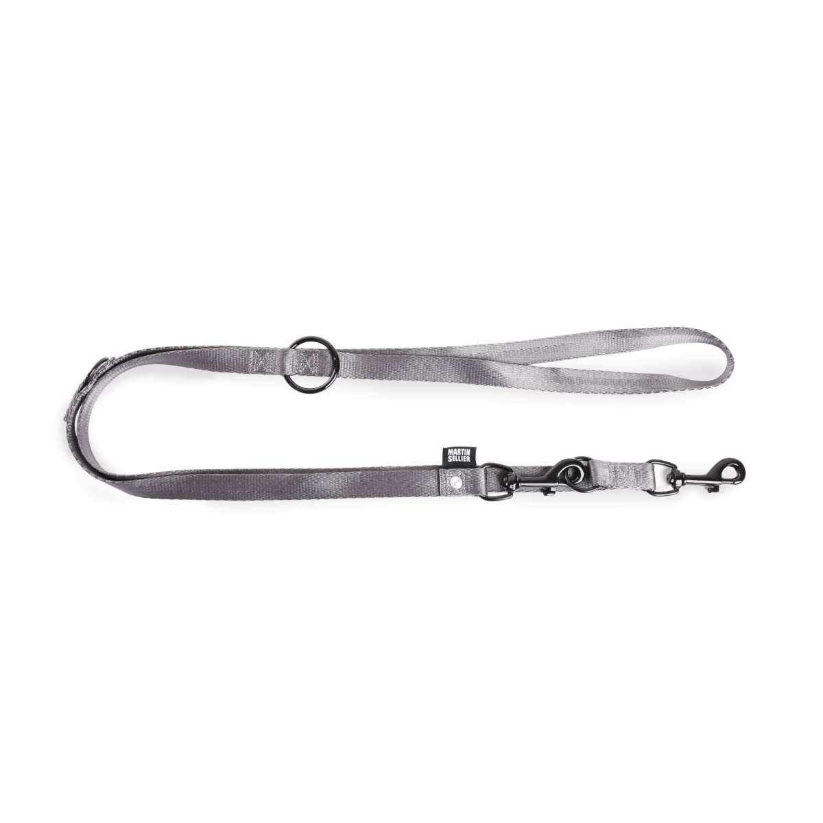 Laisse 3 positions pour chien. Position A : Laisse 1 chien (2 longueurs possibles court ou long). Position B : Laisse 2 chiens. Position C : Laisse autour du maitre - autour d'un poteau.