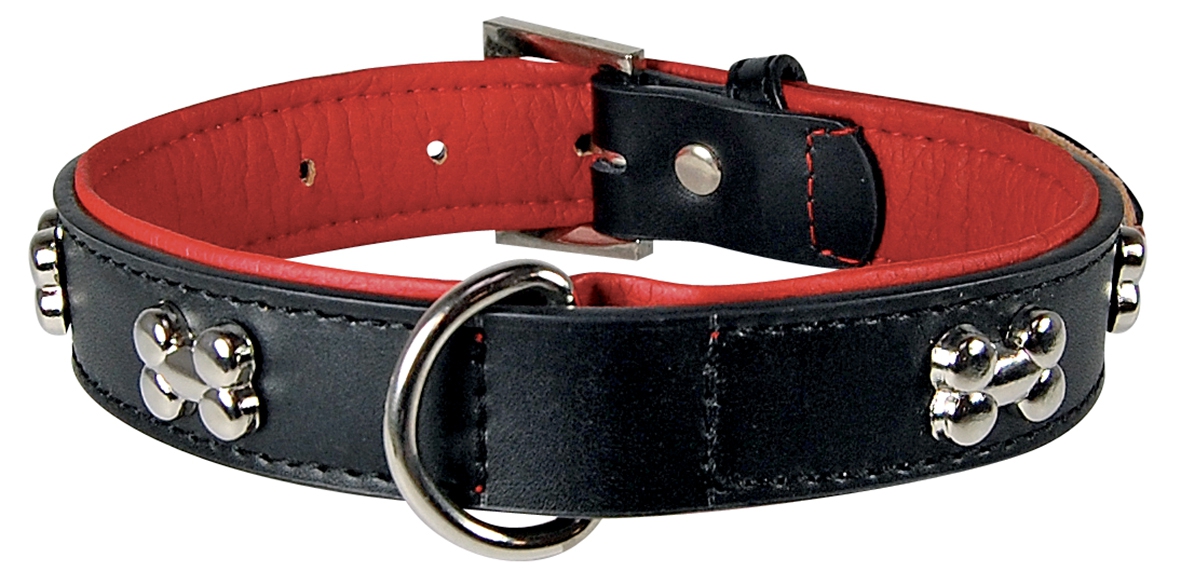 Collier motif Os extérieur Noir intérieur Rouge pour chien