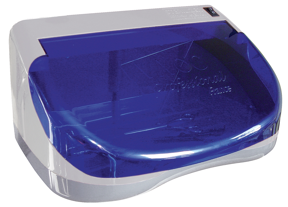 Le stérilisateur pour ciseaux et têtes de coupe peut être utilisé soit posé sur une table soit fixé au mur.