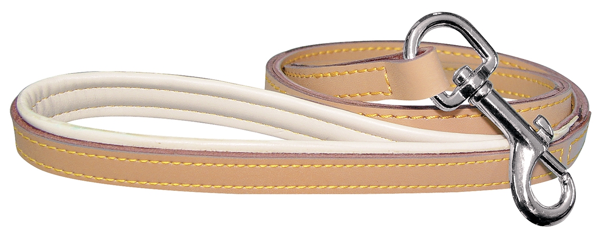 Laisse cuir doublé rembordé pour chien  - havane - 100 x 1,4 cm