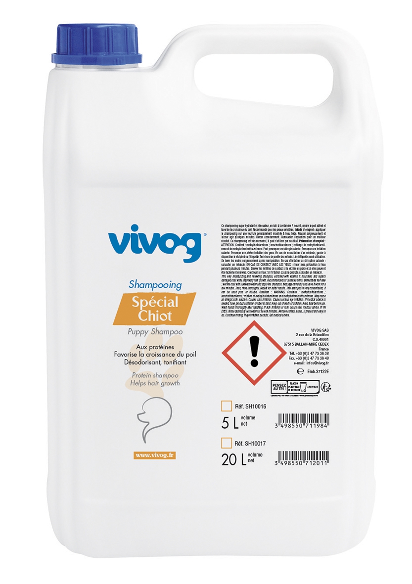 Le shampoooing chiot Vivog est super hydratant et ultra-doux. Favorise la croissance du poil. Rénovateur. Sans paraben. A l'huile de lin.