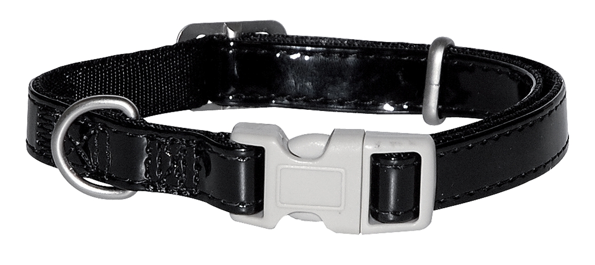 Collier pour chien - Rock'n Roll - noir verni - Vivog - Longueur 35 à 55cm - largeur 20mm