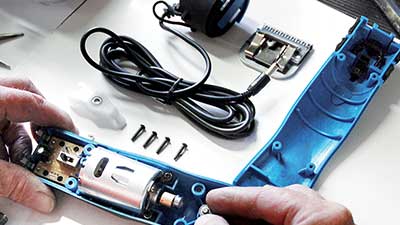 Tondeuse de toilettage professionelle FAV5 pour chien et chat. Tondeuse sur secteur. Moteur efficace. Tête de coupe système clip. Une tête de coupe de 1,5mm offerte.