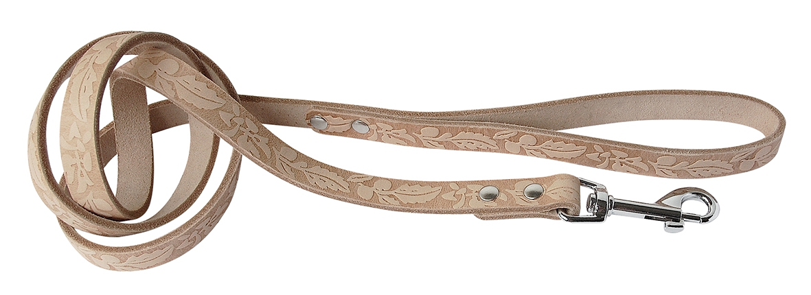 Laisse en cuir, motifs "feuilles d'automne" en relief.