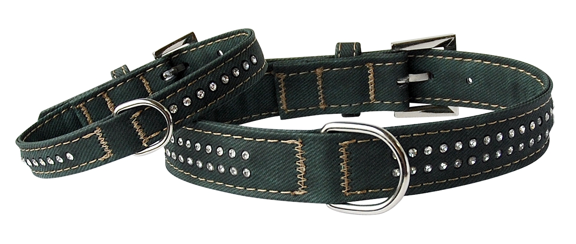 Collier pour chien - Jean vert marin - Vivog - Longueur 40cm - largeur 20mm