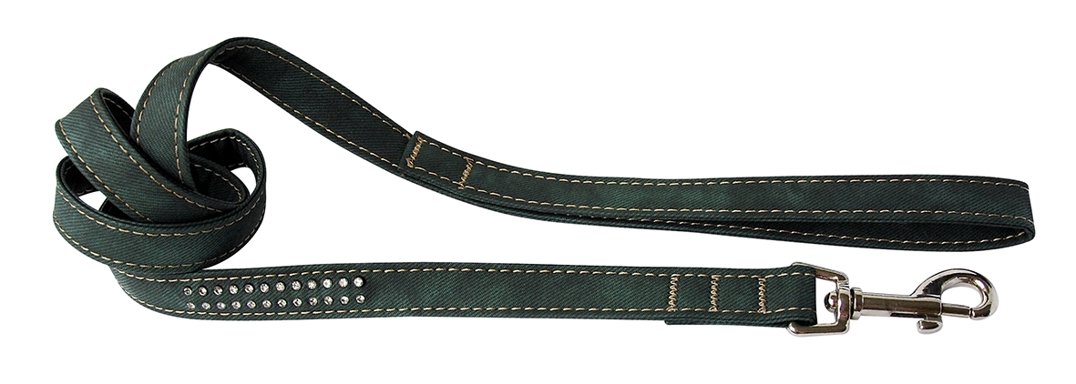 Collection fantaisie, très belle finition, collier et laisse double piqués, réhaussés de strass, boucle métal.